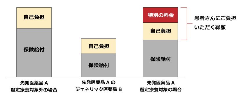 一部ご負担いただいた「特別の料金」により、薬局の収入が増えることはありません。国民医療費は増加傾向にあり、国は先発医薬品からジェネリック医薬品(後発医薬品)への置き換えを進めています。「特別の料金」を患者さまにご負担いただくことで、医療保険財政を改善し、将来にわたり国民皆保険を守っていくことを目的として導入された制度です。公費負担医療・こども医療費助成等を受けている方も対象です。