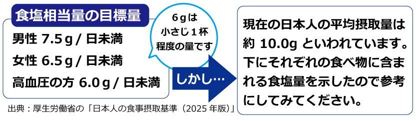 暖かい部屋から寒い外に出かけるときなど急激な温度差を感じることが多い冬は、交感神経が緊張して血管が縮み、血圧が上がりやすくなります。また、年末年始は食べ過ぎる機会が増え、塩分の摂取量も増える事で血圧が上がりやすくなります。そこで今回は減塩のコツについてお伝えしたいと思います。