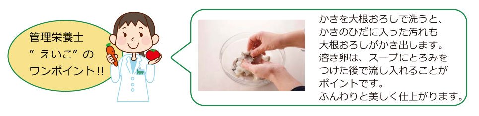 ② かきは大根おろし(分量外)をまぶして洗い、海水くらいの濃い塩水でふり洗いする。
